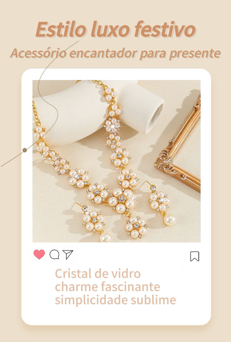 Colar com folhas, flores, pedras e pérolas sintéticas retrô – Moda europeia e americana, sucesso de vendas, versátil