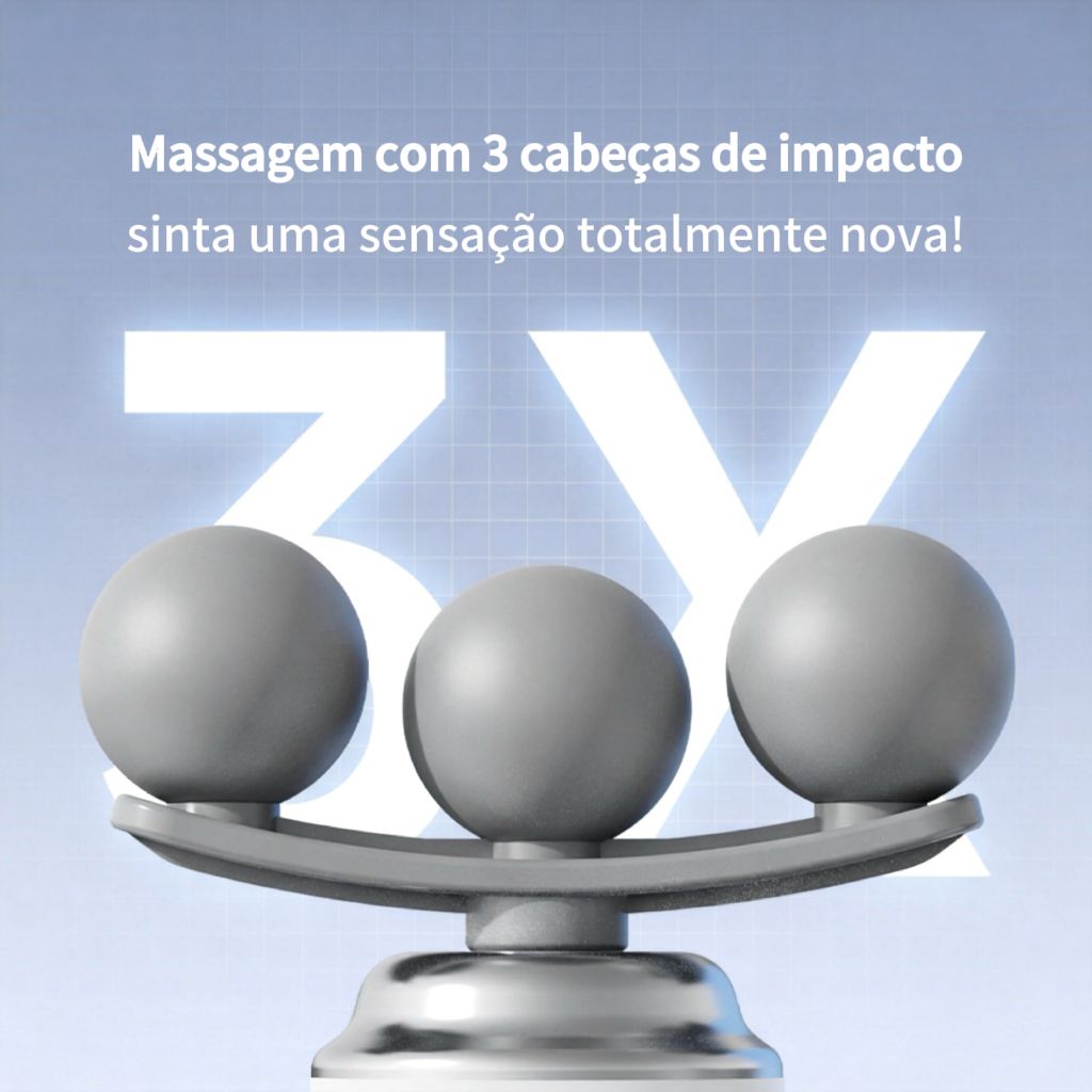 - 💥 Massagem Tripla de Impacto 3X Mais EficazCom 3 cabeças de massagem esféricas integradas, proporciona uma área de cobertura maior e um impacto mais profundo. Alivia rapidamente a fadiga muscular e a tensão nos ombros, costas e pescoço, comparado a modelos de cabeça única.