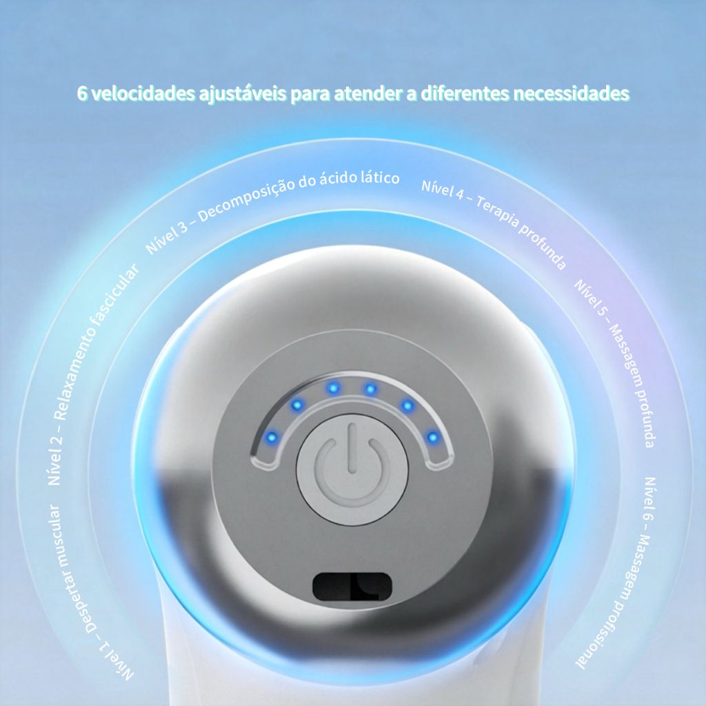 - ⚡ 6 Velocidades Inteligentes AjustáveisDo nível 1 (Despertar muscular) ao nível 6 (Massagem profissional), atende todas as suas necessidades: antes, durante e após o treino. Controle preciso para relaxar ou para uma terapia muscular profunda.